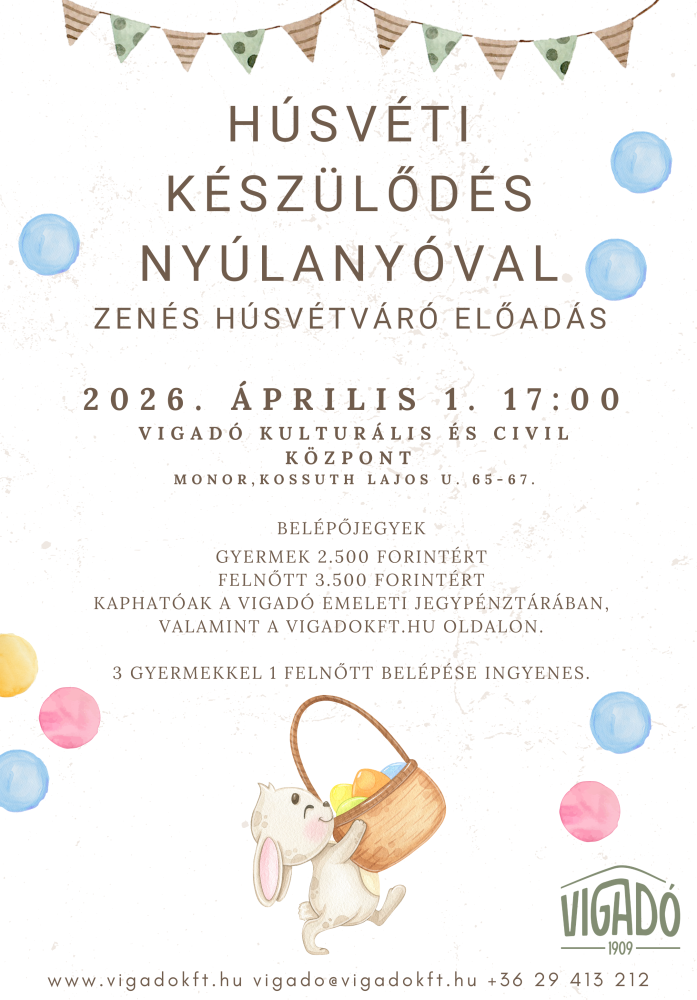 Helyszín: Vigadó Kulturális és Civil Központ (2200, Monor Kossuth Lajos u. 65-67.)