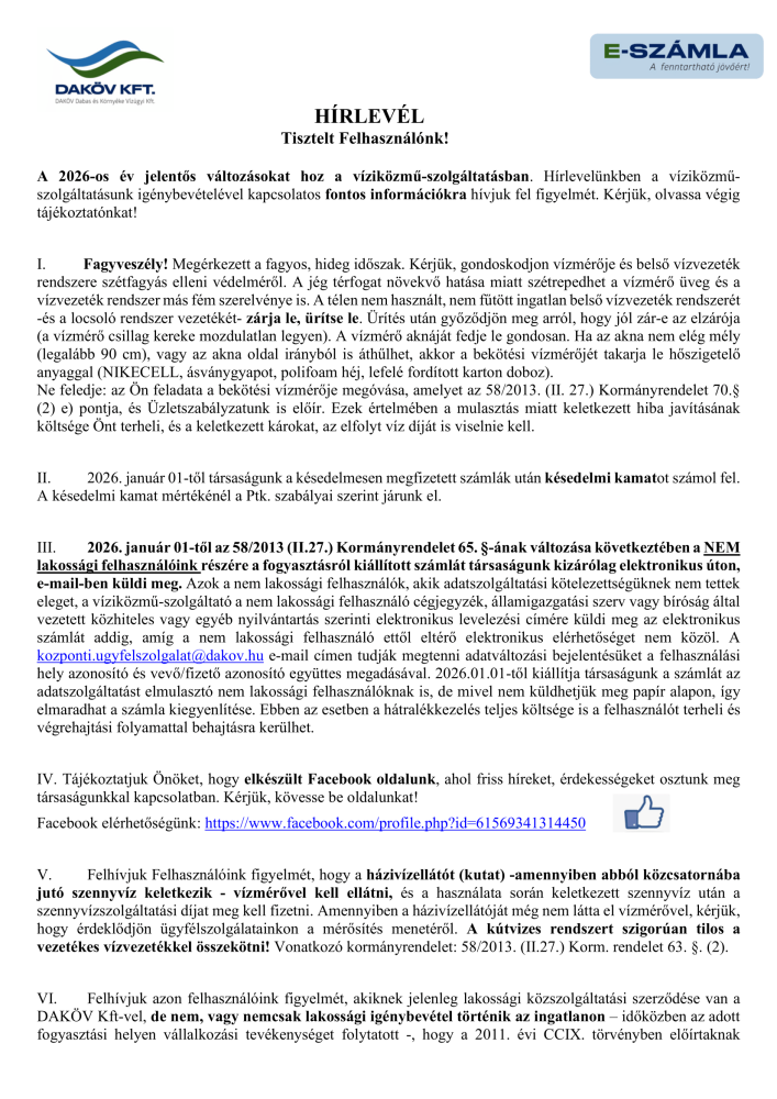 A DAKÖV Kft. tájékoztatása a 2026-os évben történő változásokról