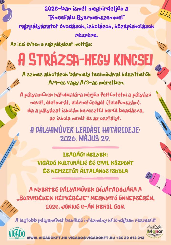 2026-ban ismét meghirdetjük a "Pincefalu Gyermekszemmel" rajzpályázatot óvodások, iskolások, középiskolások részére.
